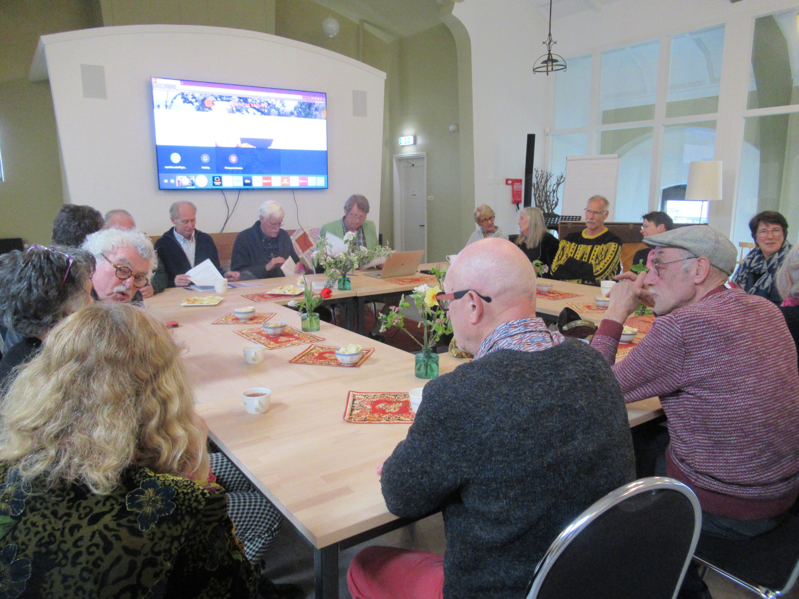 Op het grote Tv-scherm presenteerde onze voorzitter de activiteiten van afgelopen jaar: