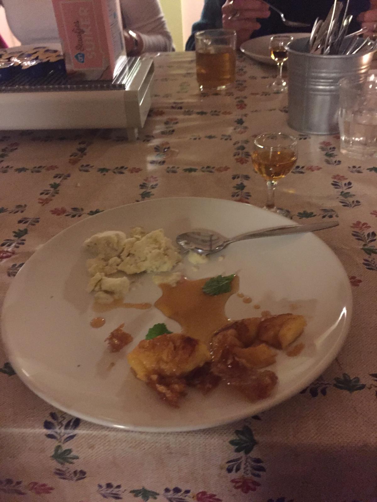 - Zelfgemaakt Appel-ijs met gecaramelliseerde appelschijfjes als toetje;