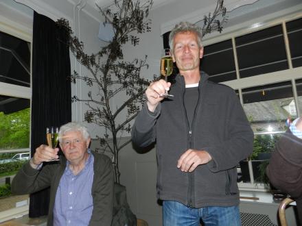 Afgekoeld op het aspergeveld zocht het gezelschap de warmte op van Proeverij “Wit Loof” aan de Loverensestraat 7. Daar werden we verwend met Prosecco en andere wijnen, biologisch geproduceerd, en door Ernst Hart samen met cuisinier Jos van Grunsven speciaal bij het menu uitgezocht. Jos is net als Erik Verhoeven een ras Brabander en boerenzoon, leerde koken van zijn grootmoeder en Wulf Engel, en werkt sinds enige tijd bij voorkeur met eenvoudige, smaakvolle grondstoffen van goede kwaliteit, zoveel mogelijk met seizoen- en streekeigen producten en brengt daarmee een voortreffelijk smakend driegangen menu voor een alleszins schappelijke prijs op tafel: