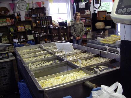 Per jaar oogst hij ongeveer 6 ton/hectare, terwijl collega’s met niet biologische methodes wel tot 12 ton/hectare of meer oogsten. De smaak van zijn asperges is daarom veel geconcentreerder en gekoppeld aan een eigen distributie naar horeca-afnemers en verkoop aan huis levert dat een hogere kiloprijs op, waardoor de lagere opbrengst zichzelf weer goedmaakt.