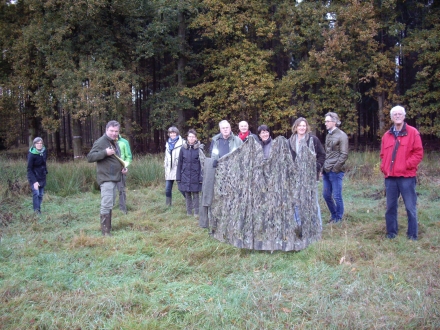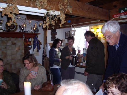 Tussen 14.00 en 14.30h verzamelden zich 19 deelnemers midden in de bossen van de Utrechtse Heuvelrug in de jachthut van de familie De Groot, waar zij met koffie werden ontvangen.