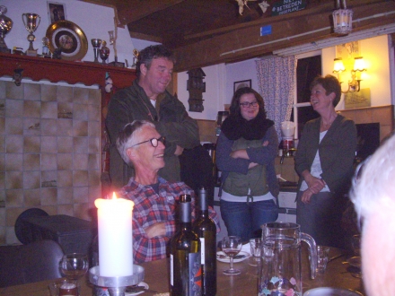 Binnen in de jachthut werd van de 4-gangen maaltijd genoten: een maaltijd zoals zijn vrouw Marjan die ook na afloop van de jacht, voor de jachtcombinatie, bereidt.