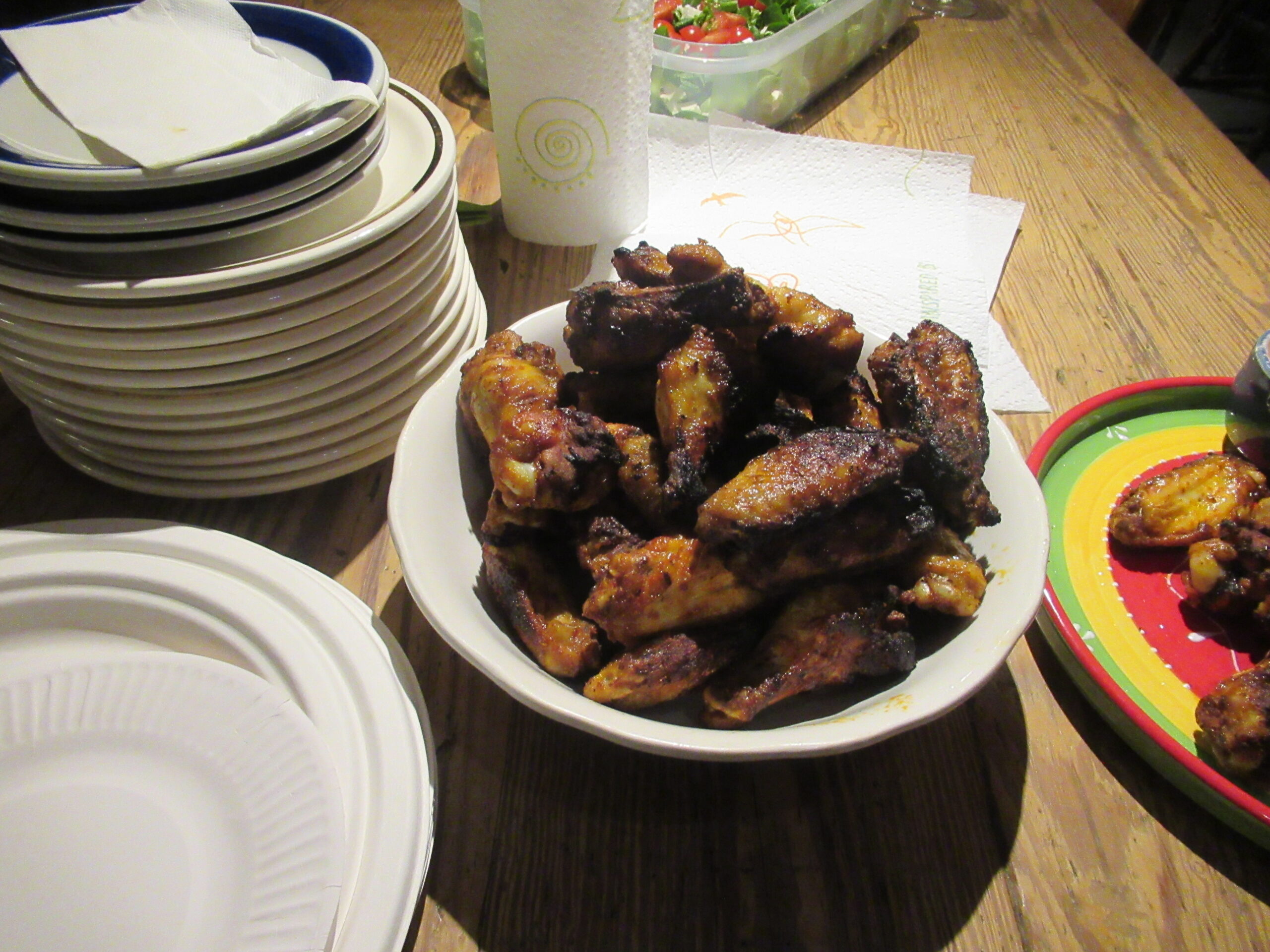 Er werden, naast salades en stokbrood met kruidenboter, ook op de barbecue geroosterde drumsticks en vleugels geserveerd, zodat een vergelijking met vegan kip goed mogelijk was.
