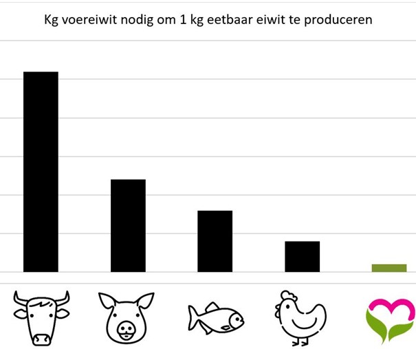 Deze grafiek maakt duidelijk wat het voordeel is van een volwaardige plantaardige eiwitbron t.o.v. een dierlijke bron.