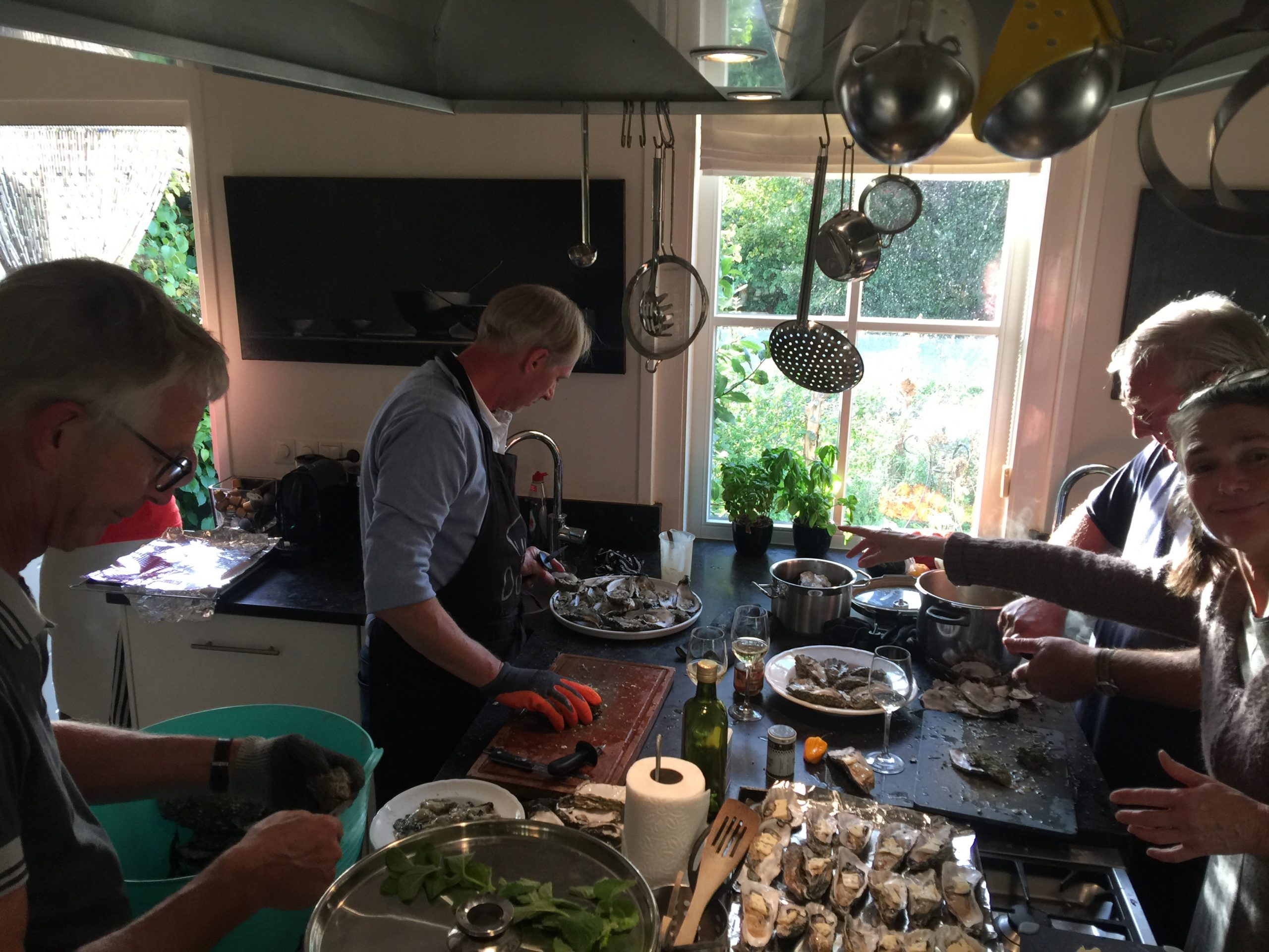 Dankzij de gastvrijheid van Susanne was het mogelijk om gezamenlijk een heerlijk oesterdiner te bereiden.