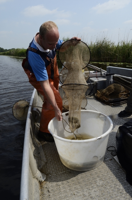 Onze gids en beroepsvisser, Bram van Wijk, bleek zeer behendig de palingvlet door de prachtige polder te loodsen en er werden tientallen fuiken gelicht.