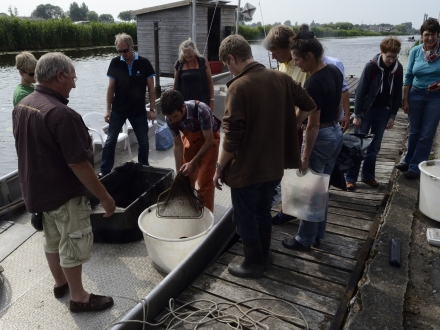 De groep werd gesplitst, zodat iedereen goed in de boot kon zitten en alles kon zien.Na een heldere uitleg over de paling en de palingstand in Nederland, kon het echte werk beginnen.
