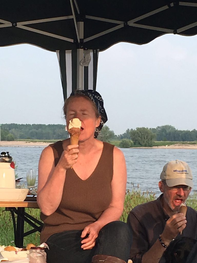 Ook een horentje met vanille- en/of chocolade ijs en de eerste aardbeien van het jaar waren een heerlijke afsluiting van deze, als van ouds, gezellige en kleinschalige picknick.