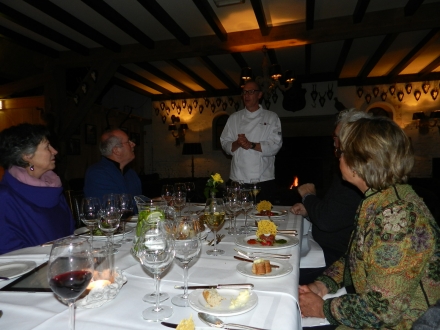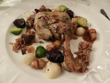 Hoofdgerecht van eendenbout, knap klaargemaakt door Djon en voorzien van uitleg door onze kok. Erg leuk die toelichting bij ieder gerecht, dat willen de leden graag horen!