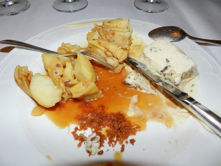 Het toetje bestond uit een pannenkoekje met Betuwse appel en ijskoude parfait, heerlijk.