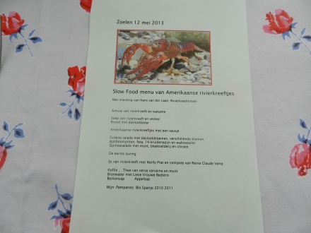 Als troost voor het gezelschap werd, na deze donkere toekomstbeschrijving, een door Yvonne en Dries bereid exclusief Slow-rivierkreeft-menu aan de gasten gepresenteerd.