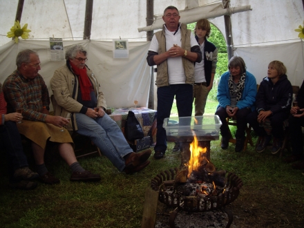 Bij Yvonne en Dries in de teepee rond een houtvuur, want het was koud op deze meidag, vertelden Hans van der Laan en zijn kleinzoon Matthijs ons hoe het met de Amerikaanse rivierkreeft in hun woonomgeving Reeuwijk gesteld is.