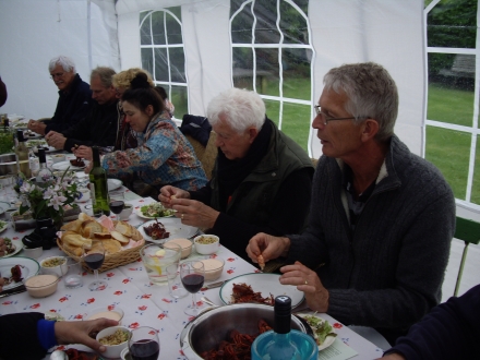 Bij dit eetfestijn werd door de 22 aanwezigen 27 kg, door Hans en Dries met hulp van hun kleinzoons, gekookte kreeften weg-gegeten. Een ware heldendaad in de strijd tegen de overmacht!