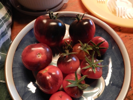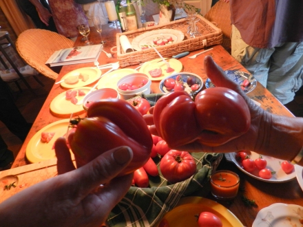 Aardbei-tomaat, Arancia, Bistecca, Black-/Choclat cherry, Bosque Blue, Brandywine, Cuore di Bue, Marmande, Pomodoro S. Marzano, Siberian Pear, Striped Cavern, Uovo Rosea.