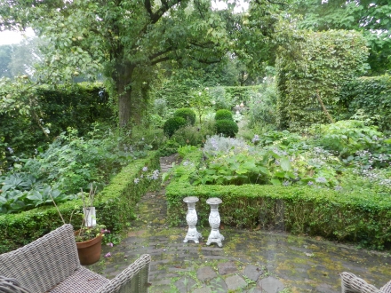Na een welkomstdrankje en hapje – home-made tomatensap met wodka of tabasco en gevulde cherry-tomaatjes met geitenkaas of garnalen – konden we de mooie landelijke tuin van onze gastheer en -vrouw bewonderen en genieten van de herten, die op dat moment langs kwamen.
