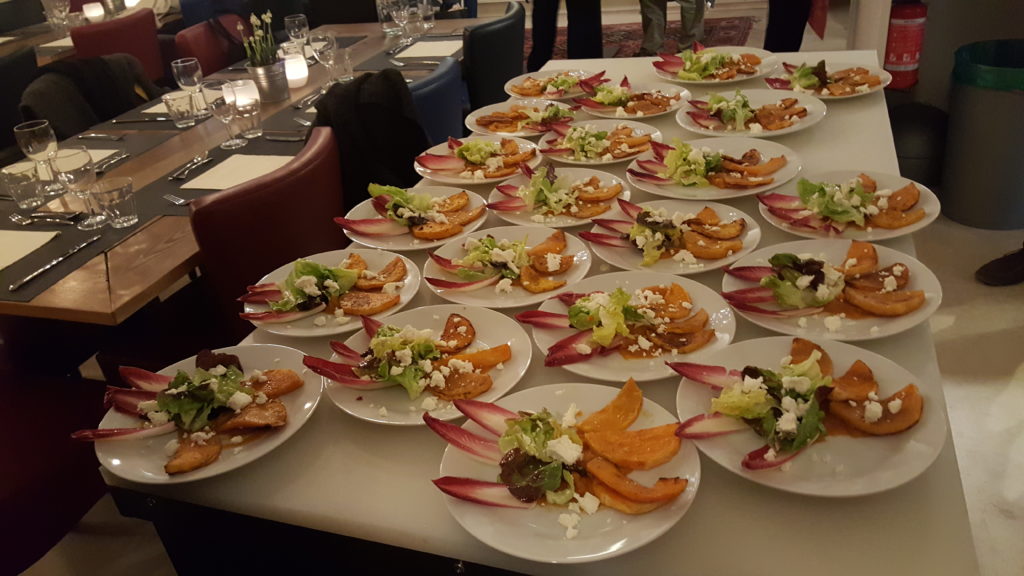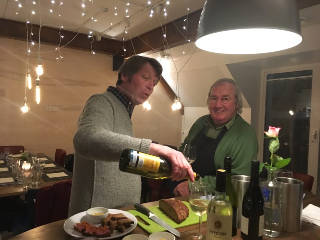 Dries, Ed en Adrie, de eigenaar van A3, hadden samen een uitgelezen en overvloedig menu samengesteld met noten in de hoofdrol.