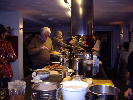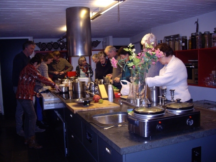 Terwijl we nog even van de ondergaande zon konden genieten, werd in de keuken al de nodige hand- en spandiensten verricht voor onze gezamenlijke winterse maaltijd.