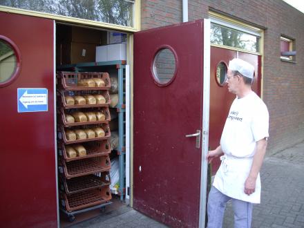 De broden zijn klaar, nu de plaatbroodbollen en broodjes er in.