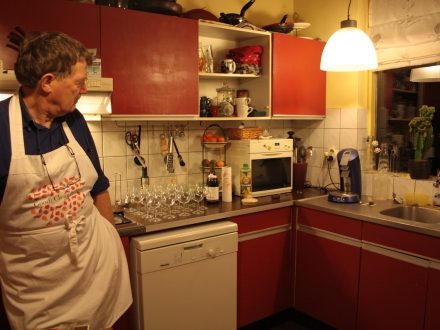 Het was allemaal goed te doen en we hadden ook een heel handige handleiding gekregen, maar er moest wel in een straf tempo doorgewerkt worden want als je product klaar was mocht je door naar de volgende halte. Wonderwel liep het allemaal redelijk goed door, al dreigde er bij de worstmaakmachine wel even een file. En er was zelfs nog tijd voor een glaasje wijn of fris tussen de bedrijven door.