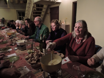 Door Dries en Yvonne werd er daarna een feestelijke kaasfondue geserveerd, met een wortelsalade van Susan.